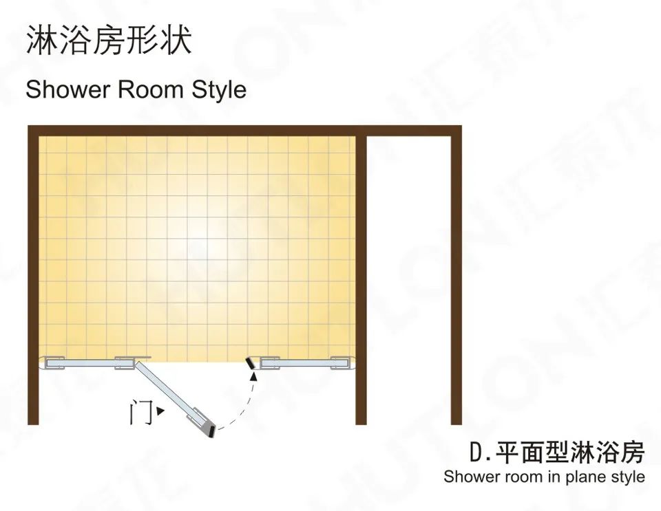 平面型淋浴房只有一面是玻璃,適合長方形的衛生間,其他三面為墻/窗戶,一般位于衛生間深處。
