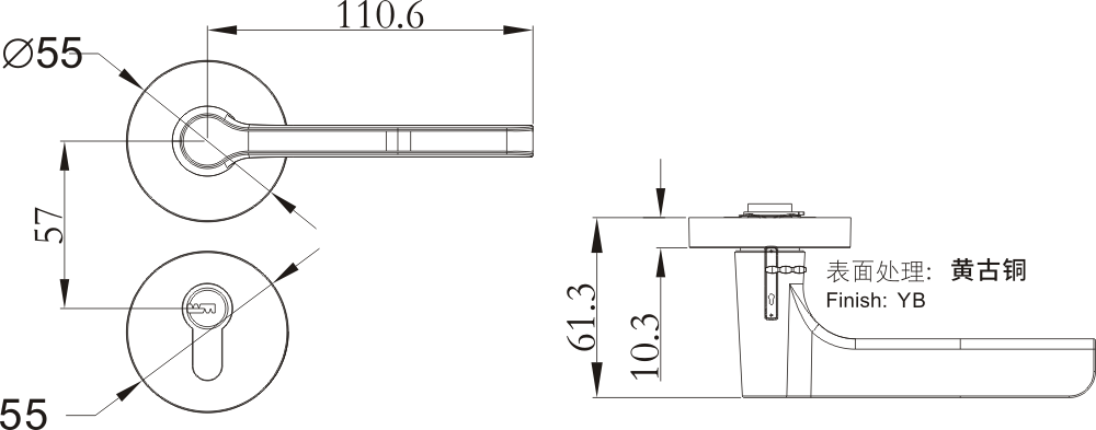 表面處理:拉絲鎳、黃古銅