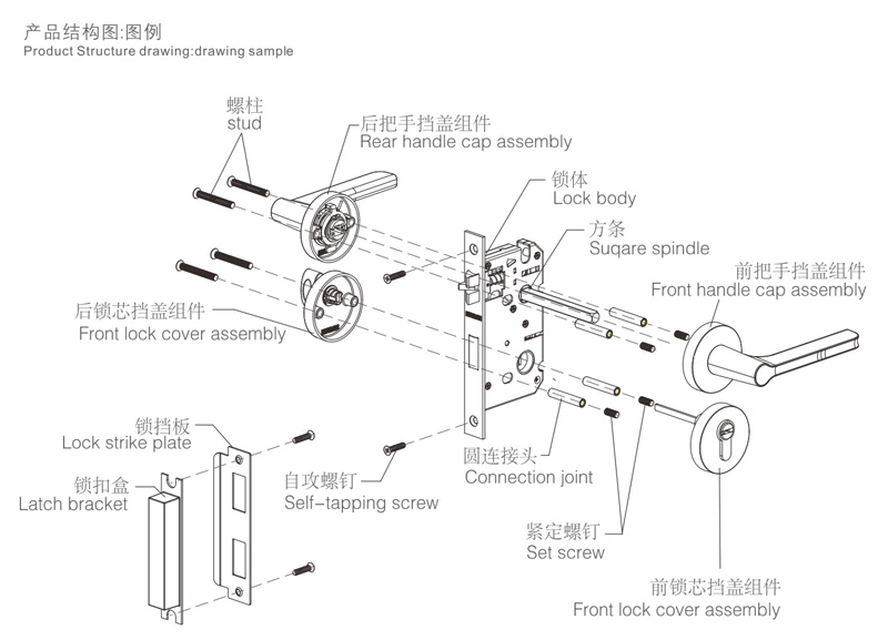 6擰緊螺釘,安裝扣板及扣盒,對齊鎖體,應使鎖舌與之配合順暢,擰緊螺釘(如上圖:H)。