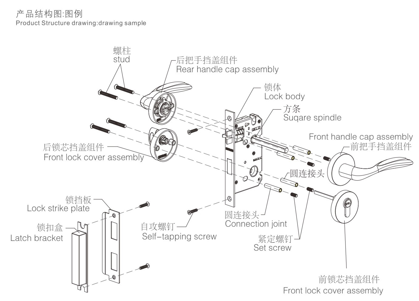 6擰緊螺釘,安裝扣板及扣盒,對(duì)齊鎖體,應(yīng)使鎖舌與之配合順暢,擰緊螺釘(如上圖:H)。
