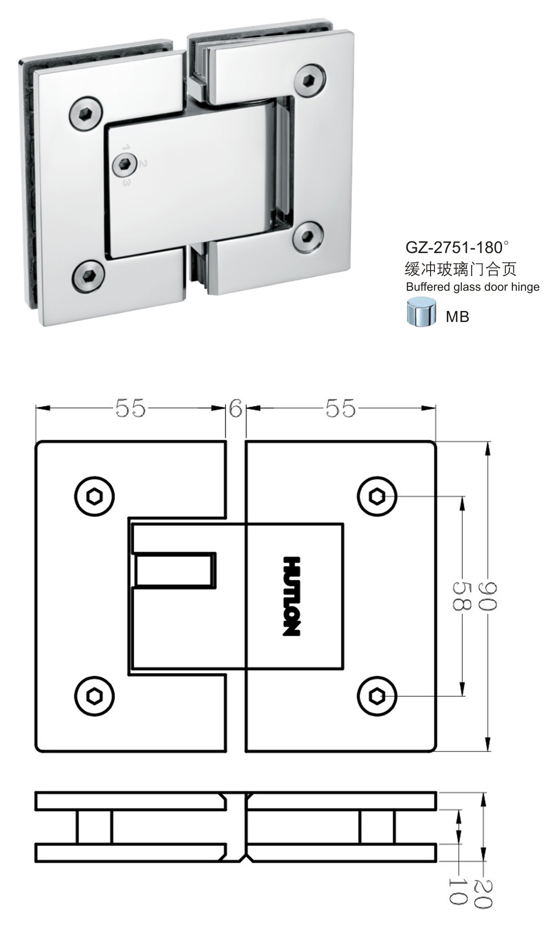 GZ-2751-180° 緩沖玻璃門合頁(yè)