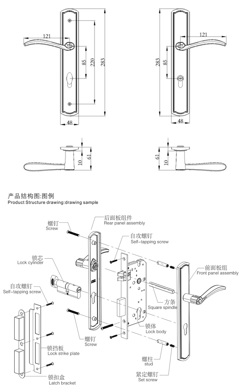 6擰緊螺釘,安裝扣板及扣盒,對齊鎖體,應使鎖舌與之配合順暢,擰緊螺釘(如上圖:H)。