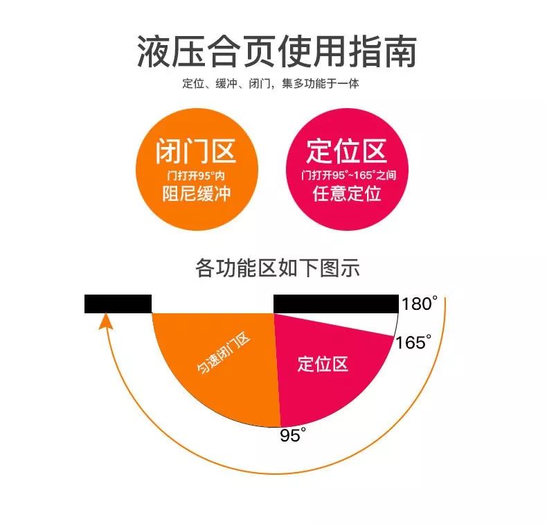 停門功能:開門角度在95°—165°內(nèi),是定位區(qū)。定位區(qū)內(nèi),我們開門開到什么角度,門就固定在什么角度不動(dòng)。