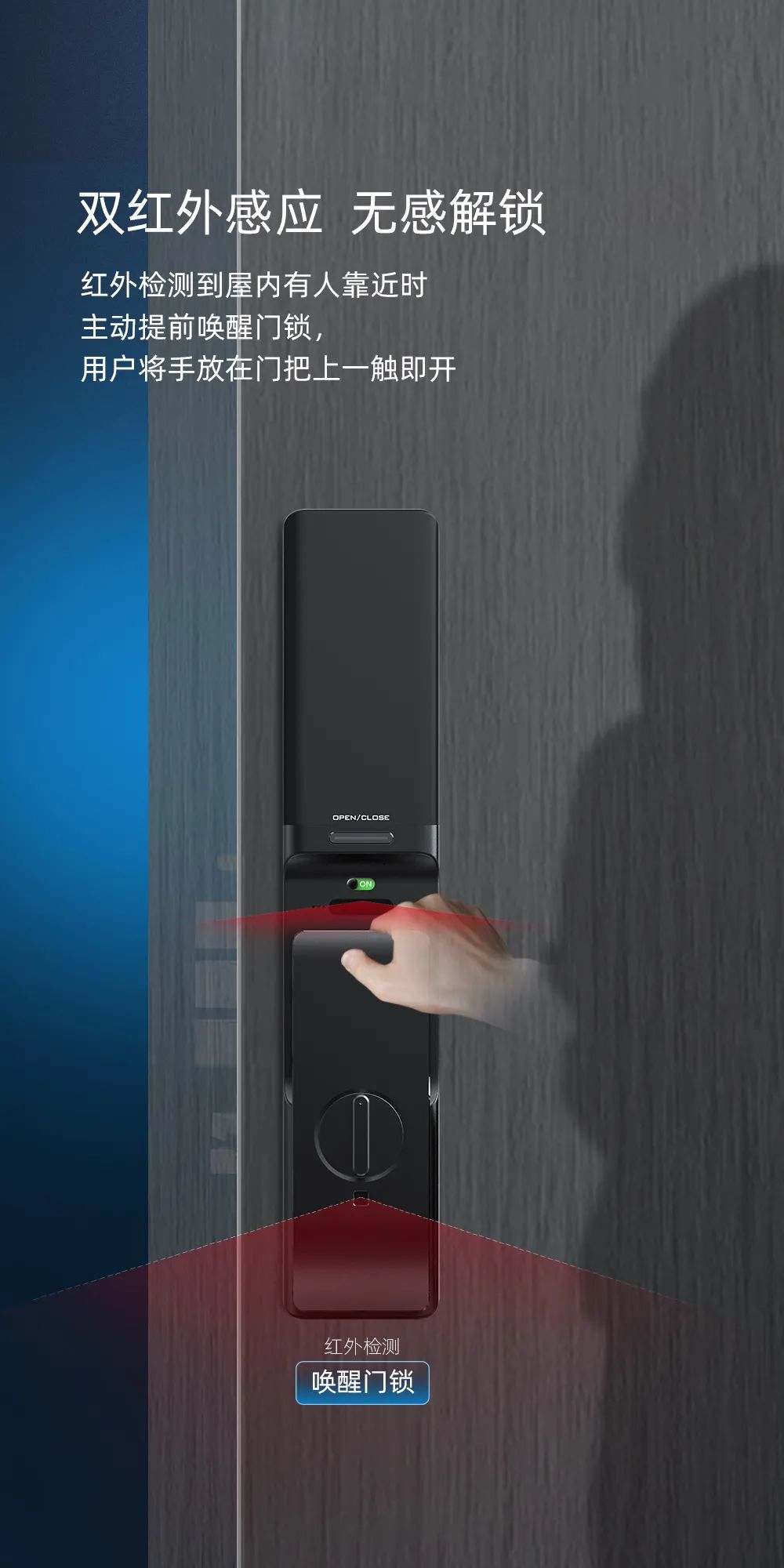 雙紅外感應開鎖,無感開鎖