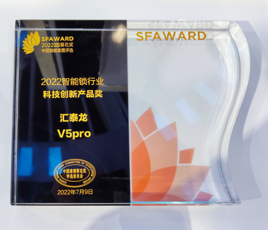 匯泰龍V5Pro獲“2022智能鎖行業(yè)科技創(chuàng)新產(chǎn)品獎”