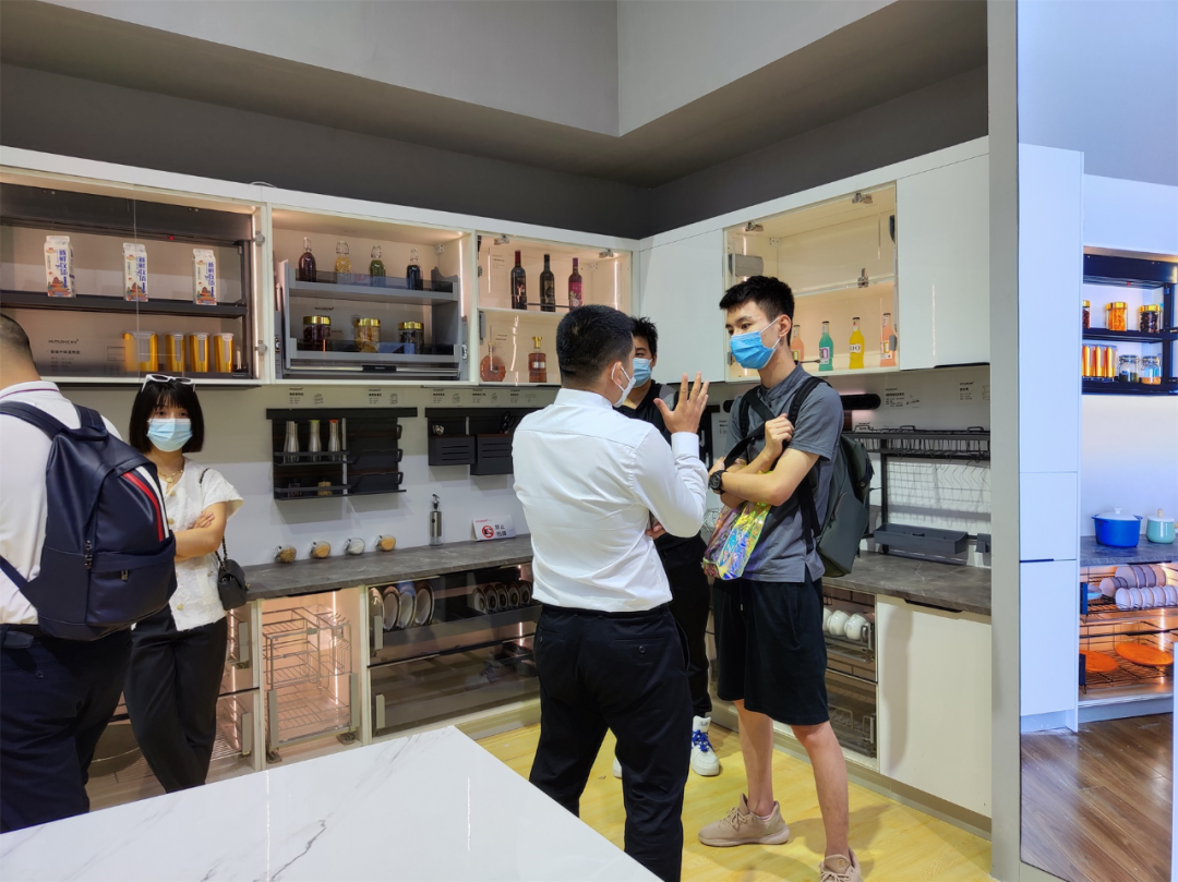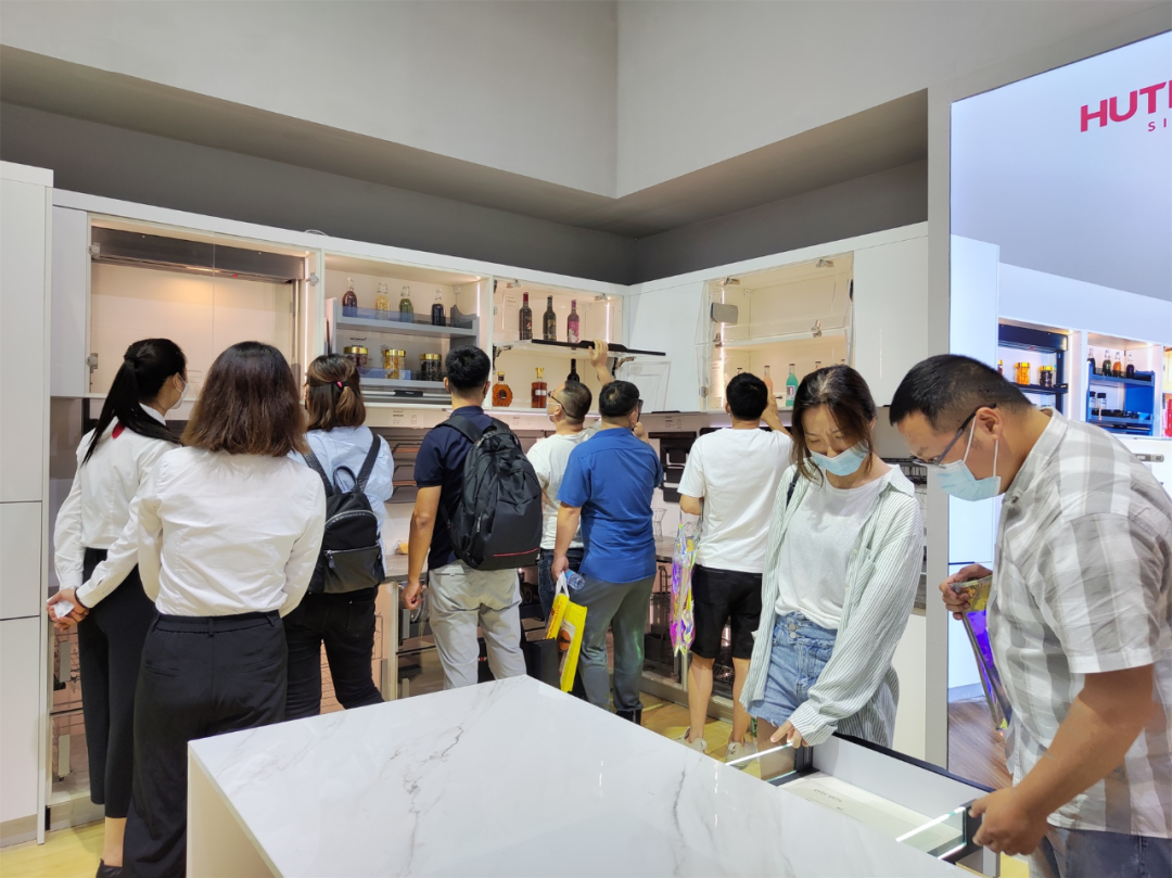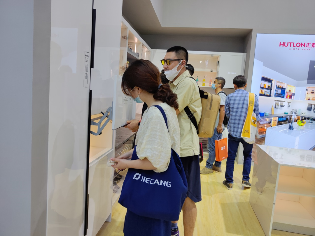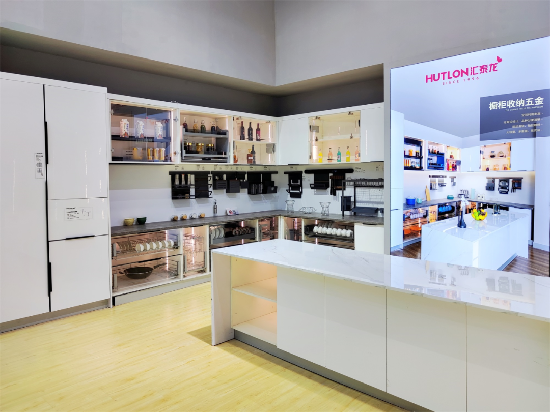 進(jìn)入展館首先到達(dá)匯泰龍定制五金沉浸體驗專區(qū)。匯泰龍選取家居生活中,人們最為關(guān)注的櫥衣柜收納、智能五金,在展館中1:1搭建還原廚房、衣帽間等家居場景,打造理想家居的樣板,帶來沉浸式觀展體驗。