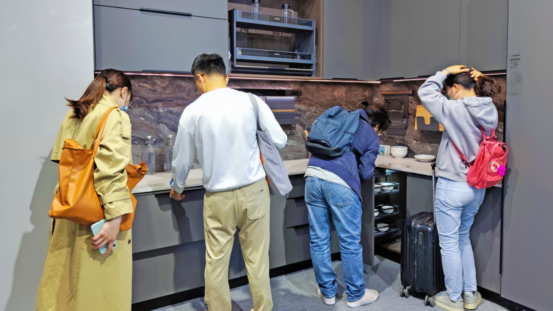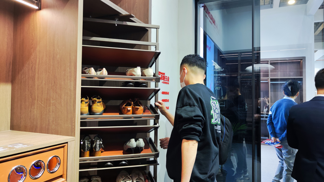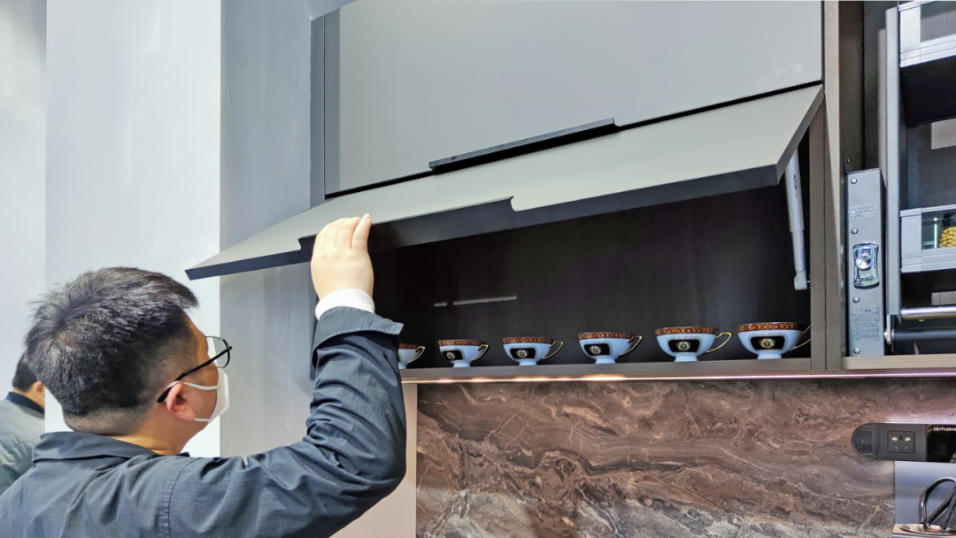 匯泰龍展館里,智能五金也融入到了廚房和衣帽間場景中。語音智能升降機,手指觸控/語音識別,吊柜平穩升降;智能百葉柜,手輕觸,百葉門扇向上打開,讓吊柜門開合更貼心;集紫外線殺菌、柔風加熱去潮、超聲波驅蟲等功能于一體的衣柜寶套裝,讓衣物更為整潔干凈;智能感應燈光,照亮櫥衣柜的每一處,讓每一樣物品都清晰可見……乘科技之風,讓生活更美好。