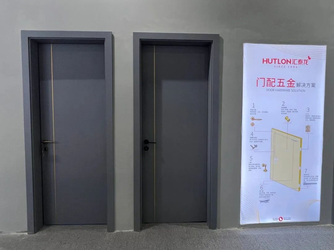 門五金展示區,匯泰龍把門五金產品融入到場景中,讓客商可以上手體驗,形成感官記憶。