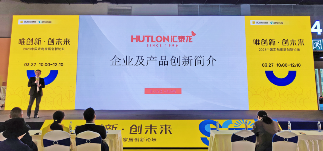 展會首日,匯泰龍全屋五金營銷總經理蔣海憑還受主辦方的邀請,在2023中國定制家居創新論壇上發表演講。