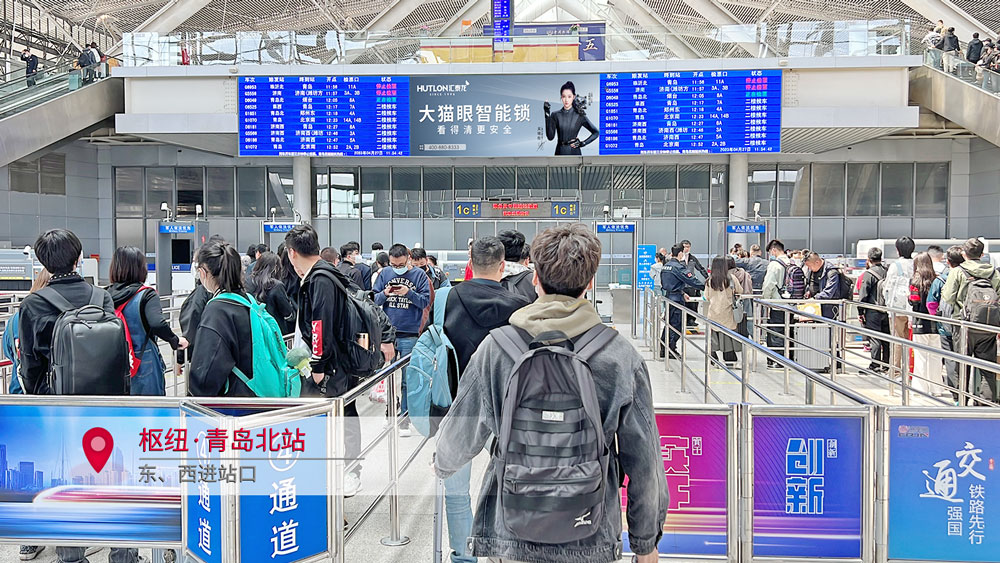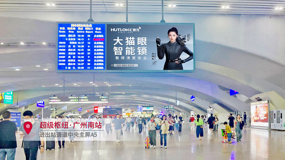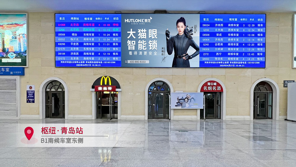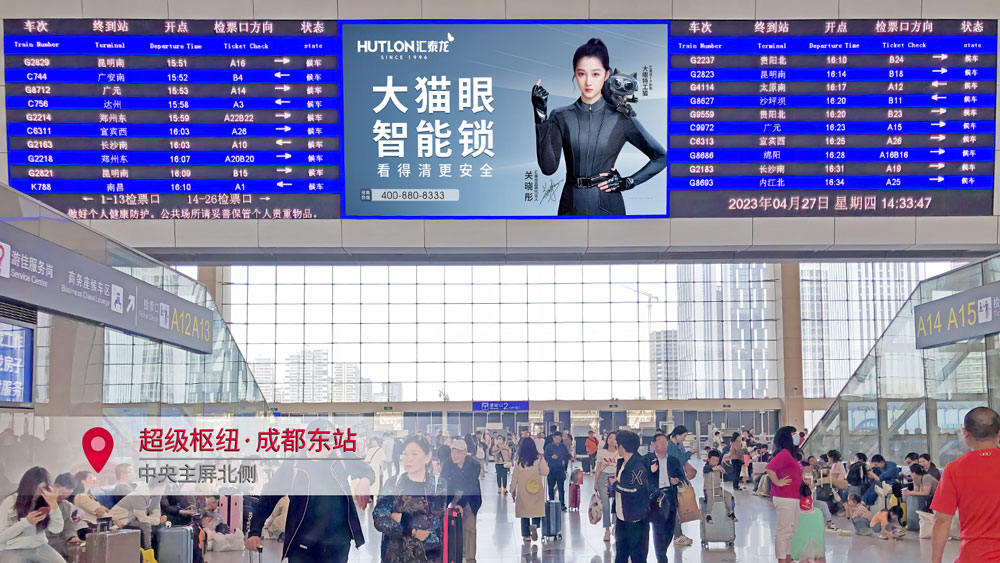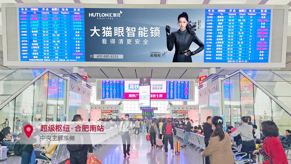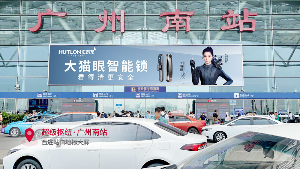 匯泰龍智能門鎖在廣州、上海、合肥、成都、杭州、南昌、青島、長沙、無錫、濟南、鄭州、福州、西安等五一長假熱門旅游城市城市的高鐵站投放高鐵站廣告,吸引不少游客打卡。