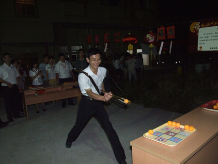 游園活動在悠揚(yáng)應(yīng)景的節(jié)日樂曲中拉開惟幕。此次的游園活動主體上分為十個有趣的小游戲,包括燈謎和競技兩大類,這些小游戲包括迷你高爾夫、中秋燈謎、趣味乒乓球、激情背靠背等等。每一位員工都可以任意參加其中的游戲并依據(jù)規(guī)則得到兌獎券,憑兌獎券兌換獎品。不到一會兒,每個游戲區(qū)域前就排滿了長龍。大家饒有興致地參與其中。在猜燈謎活動區(qū)域,同事們或者獨(dú)自揣摩,或者三五個商量,好不熱鬧。在一些競技類的小游戲中,同事們更是斗志昂揚(yáng),在娛樂中展現(xiàn)智慧,勝利的笑容隨處可見,此次的活動中,公司的所有管理層也積極參與游戲活動,在小小的競技場上一分高下。在兌獎區(qū),擺滿了實(shí)用豐富的獎品,處處可見兌到獎的同事笑容滿面地走出來,整個游園活動現(xiàn)場熱門非凡,笑聲不斷。