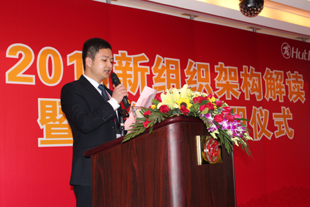 本次任命儀式,公司邀請了本土企業十大資源運籌創導者和實踐者、廣東中小企業聯合會顧問、公司顧問佟天佑先生作新組織架構解讀,他說,此次新組織架構是由多名知名管理顧問團隊與公司高層共同決議,為滿足匯泰龍公司高速發展,為適應公司未來經營戰略、人才戰略、市場戰略等背景下精心設計的。新組織架構更加體現公司職能專注、分工細致的特點,是科學、嚴謹、貼合匯泰龍公司實際的新的組織架構形式。