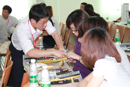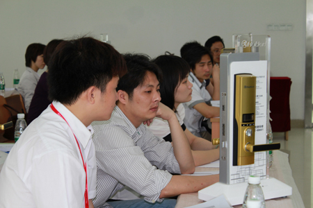 此次的培訓分為多個板塊,分別為:智能鎖市場分析;匯泰龍新產(chǎn)品介紹;操作使用;安裝與調(diào)試;售后服務(wù)。培訓采用幻燈片演示以及現(xiàn)場實操演練相結(jié)合,直觀地再現(xiàn)了匯泰龍智能電子門鎖內(nèi)部結(jié)構(gòu)和性能特點,從大家的自由的討論中總結(jié)匯泰龍新款智能電子鎖的優(yōu)勢:360度指紋識別、啟動時間不到1秒、時尚的產(chǎn)品外觀設(shè)計、雙核雙電路設(shè)計等,在實操部分,大