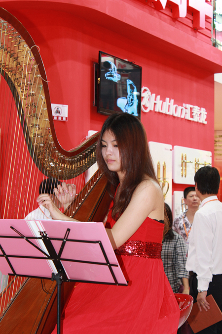 本次展會,匯泰龍還分別安排格調高雅的豎琴演奏和大小提琴協奏曲,優雅、舒緩而時又動感的樂曲,引來臺下和參展客商紛紛駐足參觀,匯泰龍展館內人頭簇擁,喝彩聲不絕于耳。展館外,創意無限的展館形象,逗留在匯泰龍展臺前的觀眾爭先合影留念,可愛的星Q與來往的客商互動,吸引了眾多參觀者的眼球,匯聚了全場最高的人氣,讓匯泰龍展館一如既往成會展會的人氣中心。