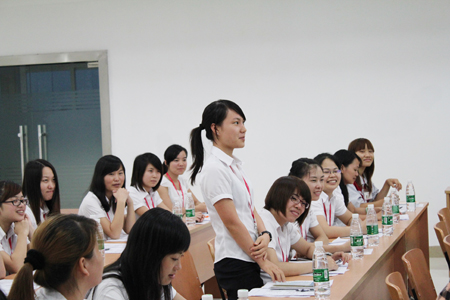 本次培訓課程總共三個小時,分為兩個部分:電話禮儀基礎知識講解和演練。講師首先講解了學習電話禮儀的重要目的、電話禮儀形象塑造、通話注意事項等等。在演練過程中,全體學員分為八個討論小組,每一組學員代表上臺當場表演,由下面的學員通過剛剛學習的禮儀知識對表演者進行點評,整個培訓課程氛圍活躍,互動性強,取得了良好的培訓效果。