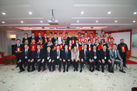 優(yōu)秀員工和效率之星與公司高層合影