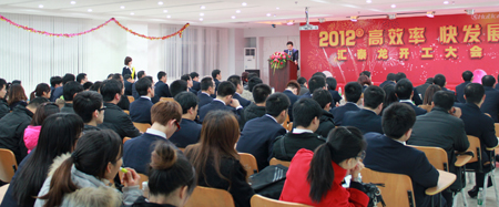 在開工大會(huì)上,首先由總經(jīng)理徐振忠先生發(fā)表講話。徐總利用非常嚴(yán)謹(jǐn)、詳盡的統(tǒng)計(jì)數(shù)據(jù)總結(jié)了十七項(xiàng)匯泰龍公司2011年在內(nèi)部管理、大型商務(wù)營銷活動(dòng)、營銷渠道和營銷網(wǎng)絡(luò)建設(shè)、品牌建設(shè)、財(cái)務(wù)管理、供貨及研發(fā)能力進(jìn)一步提高等各個(gè)方面取得的成績。同時(shí),徐總也從數(shù)據(jù)的演示中客觀地指出了公司2011年發(fā)展過程中一部分不足 ,也帶領(lǐng)大家對(duì)各項(xiàng)不足的項(xiàng)目進(jìn)行了非常深入和實(shí)際的原因分析,對(duì)大家在新的一年發(fā)揚(yáng)成績、改進(jìn)不足提供了明確的方向和嚴(yán)格的要求。接著,徐總在講話中提出了匯泰龍公司2012年整體的工作計(jì)劃,提出了以業(yè)績?cè)鲩L為核心,以目標(biāo)達(dá)成為手段,營銷管理、科技創(chuàng)新、優(yōu)化管理并駕齊驅(qū)的管理模式。在2012年管理模式下,在新的起點(diǎn)、新的目標(biāo)、新的環(huán)境下,公司和徐總對(duì)各個(gè)職能部門的全體管理人員提出了新的要求和期望,提出了具體的可量化考核的目標(biāo)。