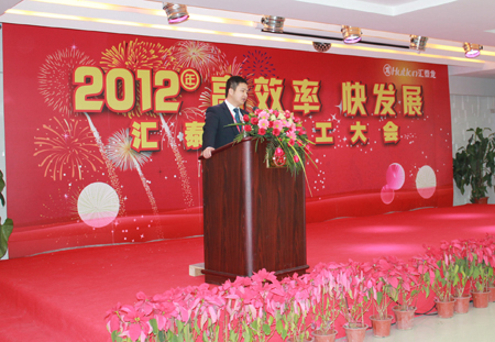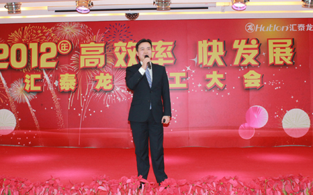 在徐總講話結(jié)束后,董事長陳鴻填先生也受邀發(fā)表了演講。陳董首先對(duì)匯泰龍公司全體人員2011年共同努力取得的成績表示了肯定,對(duì)公司2012年在各項(xiàng)資源投入作出說明,提出了2012年第二個(gè)效率年“高效率 快發(fā)展“的企業(yè)文化主題和新的定義,提出了全體匯泰龍人保持激情的重要性,最后,陳董對(duì)公司的團(tuán)隊(duì)建設(shè)、業(yè)績、營銷等方面提出了展望。