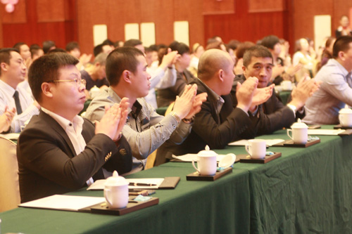 董事長陳鴻填先生以《激情和夢想》為主題,首先向大家介紹在整個大市場國家貨幣政策、品牌競爭加劇、新的營銷手段出現、國外品牌大量涌入、國內品牌競爭激烈等諸多挑戰性因素下,五金衛浴行業所面臨的新一輪的機遇。作為國內五金衛浴行業領軍品牌,在新的形勢下,新的年度,匯泰龍將更加大力投入研發力量、提升產品高附加值,重新定位匯泰龍品牌,不僅保持國內領軍品牌的地位,樹立國內行業標桿,同時也有充足的實力和國外一線品牌抗衡,新年度將大力競爭國際市場。整個報告內容高瞻遠矚,陳董指出,在新形勢下,匯泰龍的發展方向不會動搖,但我們必須改變思維,知已知彼,順應市場發展趨勢,以不斷的創新來提高自身的核心品牌競爭力,讓在座的經銷商進一步認清市場形勢、時刻具備市場競爭意識、不斷努力提高銷售業績,與總公司齊步向前、共同發展的重要性。