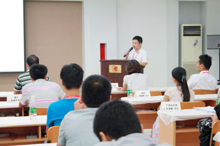 730下午5點半,匯泰龍第二期智能電子鎖集訓在佛山南海生產基地圓滿結束。通過四天時間的封閉式理論和實操培訓,經過嚴格的現場考試,又一批參訓的三十余名全國經銷商推薦的一線銷售精英完成了培訓課程并取得了《匯泰龍智能電子鎖培訓合格證書》。本次培訓主講為公司電子鎖事業部黎宇先生。