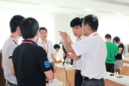 在培訓開始,供應中心總監楊軍先生作了開學致辭,他結合第十四屆建博會的市場調查,為在場的學員分析了當今智能電子鎖的市場形勢,提出了系統學習智能電子鎖知識的必要性,并且鼓勵全體學員在本期的培訓過程中能學有所成,為所在地匯泰龍客戶提供更加專業的銷售、安裝、售后服務。匯泰龍電子鎖事業部全體產品開發人員作為本次培訓的講師和助教參加了本次培訓。