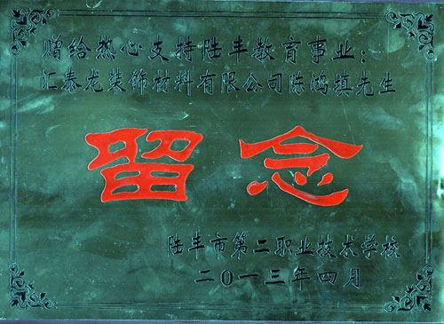 匯泰龍裝飾材料有限公司董事長陳鴻填先生是甲子鎮(zhèn)人。多年來,他情系家鄉(xiāng),關(guān)心家鄉(xiāng)發(fā)展,多次慷慨解囊,鼎力支持家鄉(xiāng)各項經(jīng)濟(jì)建設(shè)。