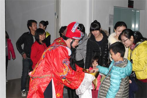 員工和員工家屬進場時領取“財神爺”派發的糖果