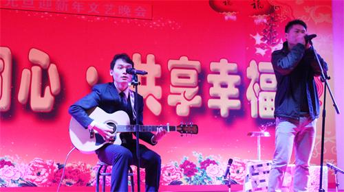 研發中心謝吉華和品控部邱紅炎表演吉他彈唱