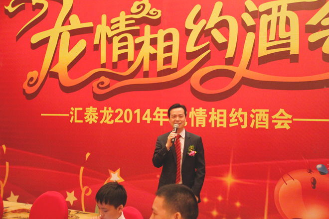 在歡快的開場序曲中,匯泰龍2014年度“龍情相約”酒會正式開始。匯泰龍公司董事長——陳鴻填先生在熱烈的掌聲中登臺并發表了熱情洋溢的祝酒詞。