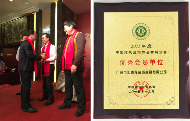 并榮獲“2015年度中國建筑裝飾協會材料分會優秀會員單位”