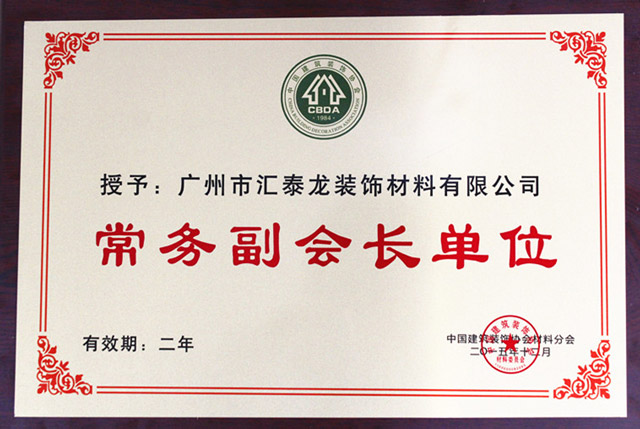 匯泰龍榮升“中國建筑裝飾協會材料分會常務副會長單位”