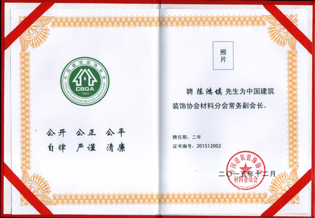 陳鴻填先生被聘為“中國建筑裝飾協會材料分會常務副會長”