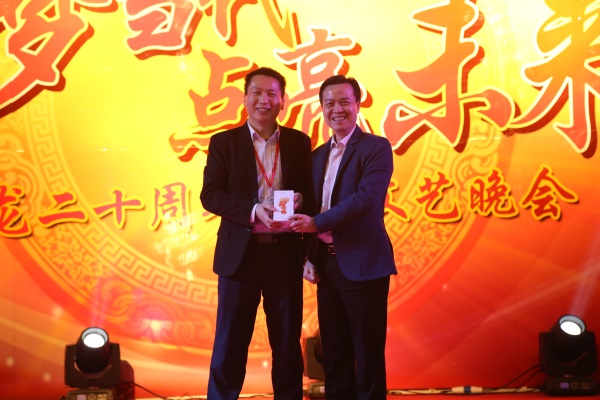 為慶祝公司二十周年,本次晚會首次評出12名“感動匯泰龍人物”,匯泰龍公司陳董、陳太為獲獎員工頒發(fā)榮譽證書和獎品“64G香檳金Iphone6S”。