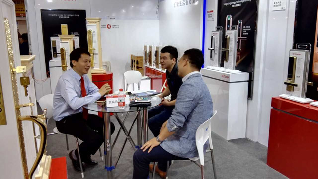 智能鎖事業(yè)部總經(jīng)理黎宇先生與貴賓洽談合作事宜。