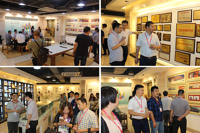 接著,參會嘉賓參觀了匯泰龍歷史文化館,見證了匯泰龍二十年來的品牌文化和發展歷史。二十年來,匯泰龍從廣州泰康路建材集散地走上了五金世界的大舞臺,走向國際知名品牌,帶動了裝飾五金行業品牌發展之路。墻上一張張的老舊照片,記載著匯泰龍用激情與榮耀,書寫的一部從無到有,由弱變強,一路劈荊斬棘,風雨兼程的企業奮斗史。