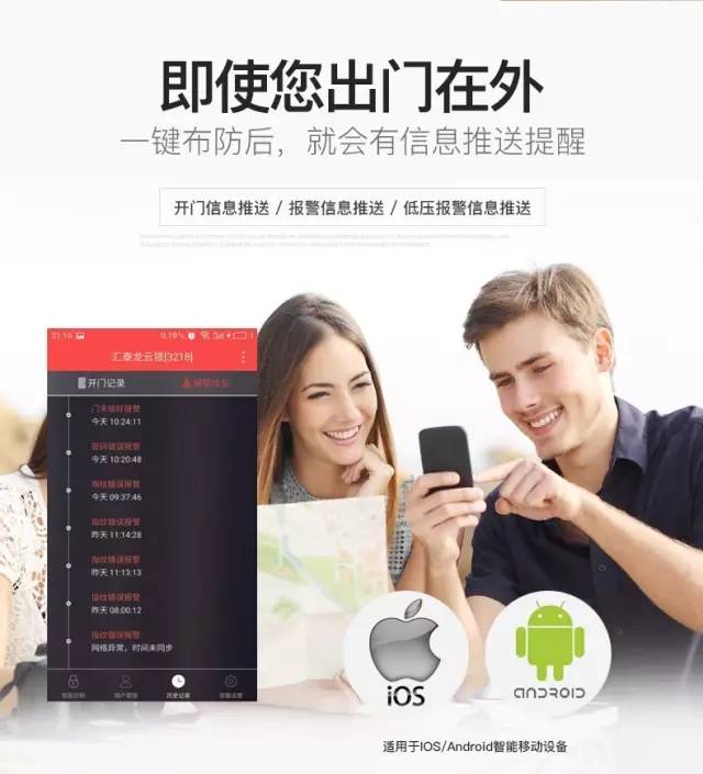 能通過手機APP進行遠程實時監控、遠程授權開鎖、實時反饋門鎖信息、異常報警信息推送、用戶實名分權管理等操作▼