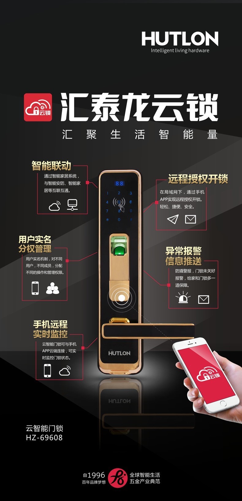 匯泰龍云鎖采用先進的生物識別技術,擁有指紋、密碼、感應卡、機械鑰匙、手機APP五合一開鎖方式,指紋輕觸間實現開鎖,配有真人語音提示,且擁有低電量雙重提醒功能。擁有十幾項發明專利,幾十項實用新型專利,集便捷、安全于一身。