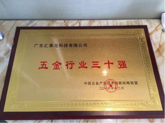 ▲匯泰龍榮獲五金行業三十強企業榮譽