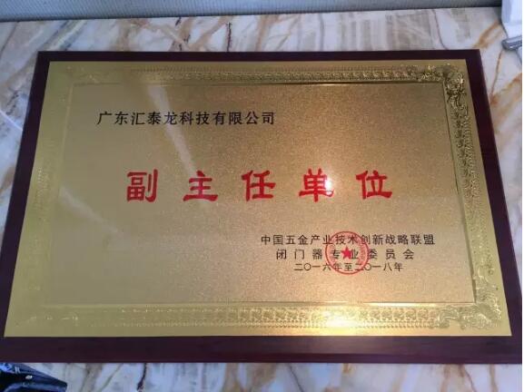 匯泰龍董事長陳鴻填先生榮獲五金行業年度風云人物榮譽,匯泰龍智能事業部總經理黎宇先生榮獲科技進步獎,廣東匯泰龍科技有限公司榮獲五金行業三十強企業榮譽、并當選為閉門器專委會副主任單位。