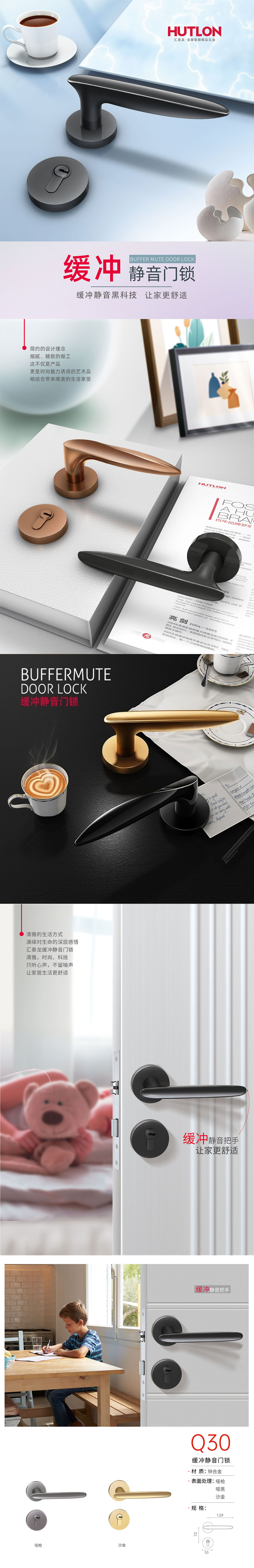 內置阻尼器設計,開關門下壓把手的聲音遠小于普通門鎖