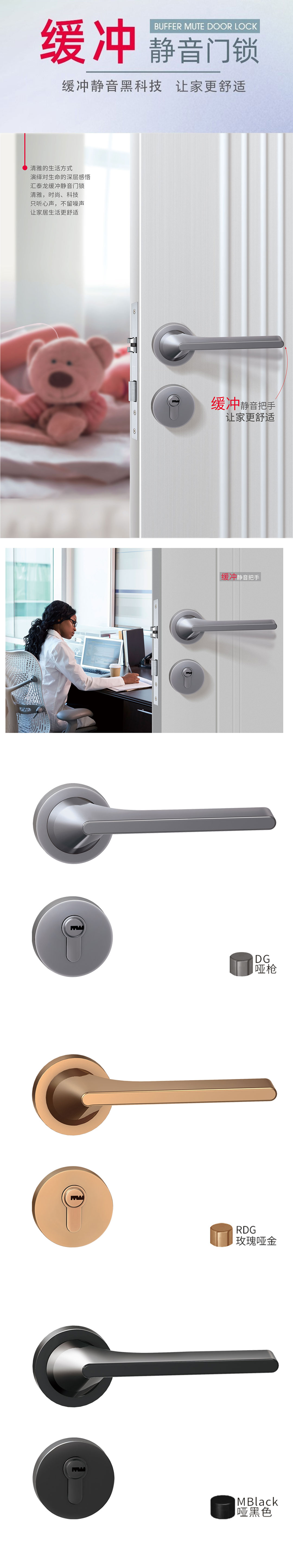 內(nèi)置阻尼器設(shè)計(jì),開(kāi)關(guān)門下壓把手的聲音遠(yuǎn)小于普通門鎖