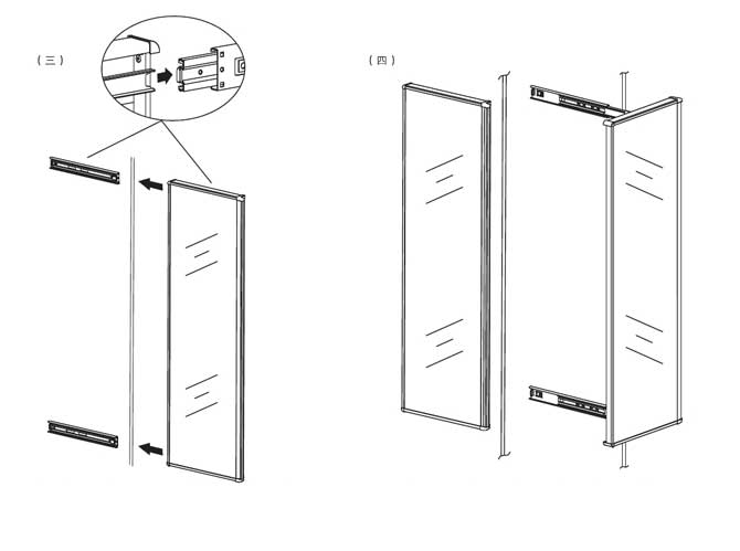 3、將衣柜鏡上的外軌對準(zhǔn)內(nèi)軌插入。