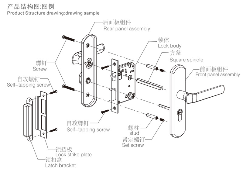 6擰緊螺釘,安裝扣板及扣盒,對(duì)齊鎖體,應(yīng)使鎖舌與之配合順暢,擰緊螺釘(如上圖:H)。