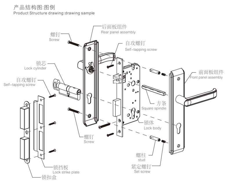 6擰緊螺釘,安裝扣板及扣盒,對齊鎖體,應使鎖舌與之配合順暢,擰緊螺釘(如上圖:H)。