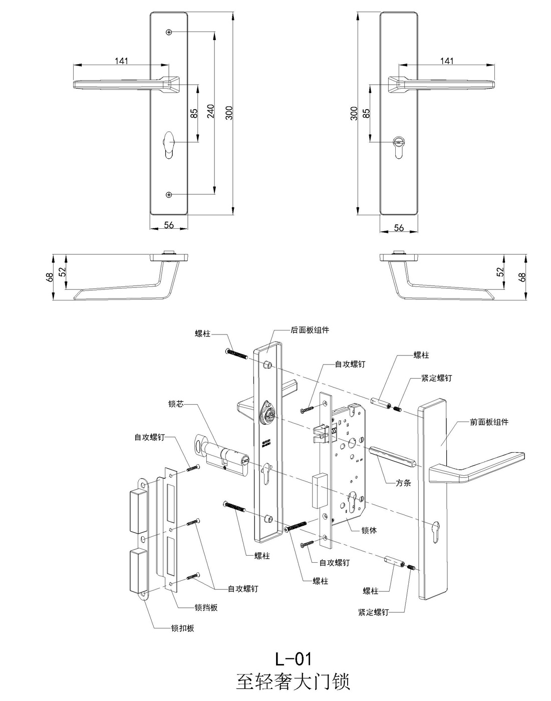 1. 大門鎖采用H59銅制造,具有外觀精美、時尚的造型,生產(chǎn)工藝精細,把手觸摸手感佳。