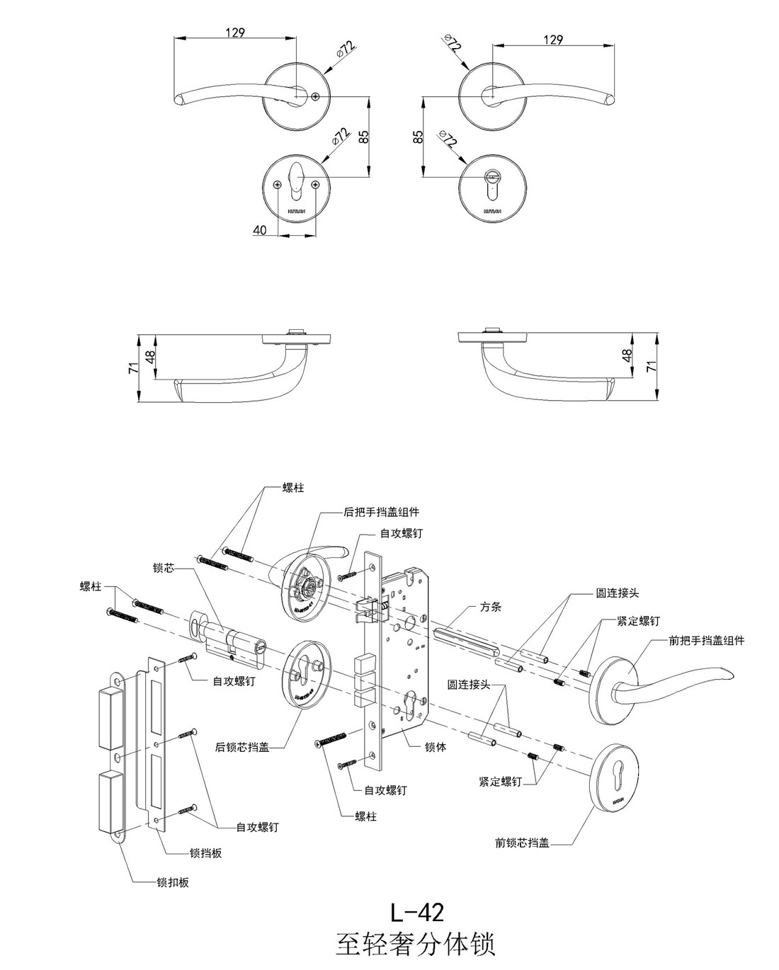 1. 大門鎖采用H59銅制造,具有外觀精美、時尚的造型,生產工藝精細,把手觸摸手感佳。