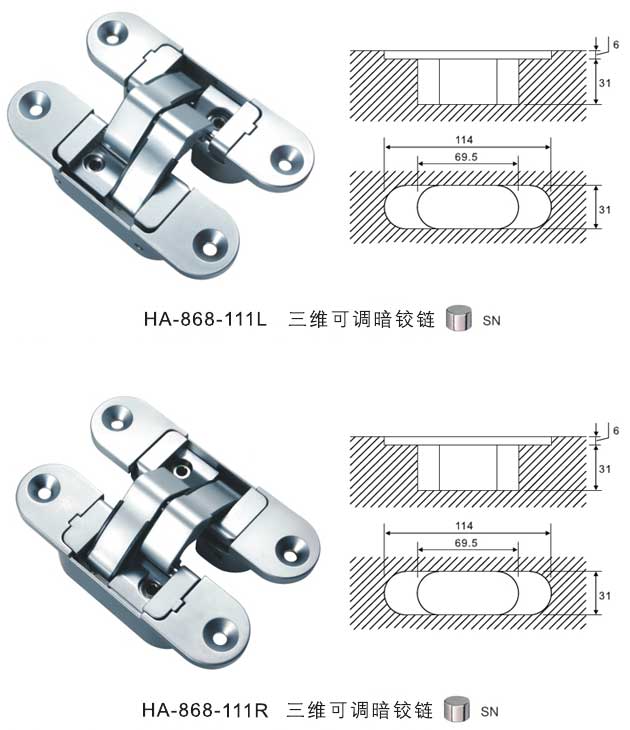 三維可調節暗鉸鏈具有先進的調節功能,完美的隱藏安裝方式,符合歐盟標準EN1935,是現代裝飾五金的最佳選擇。