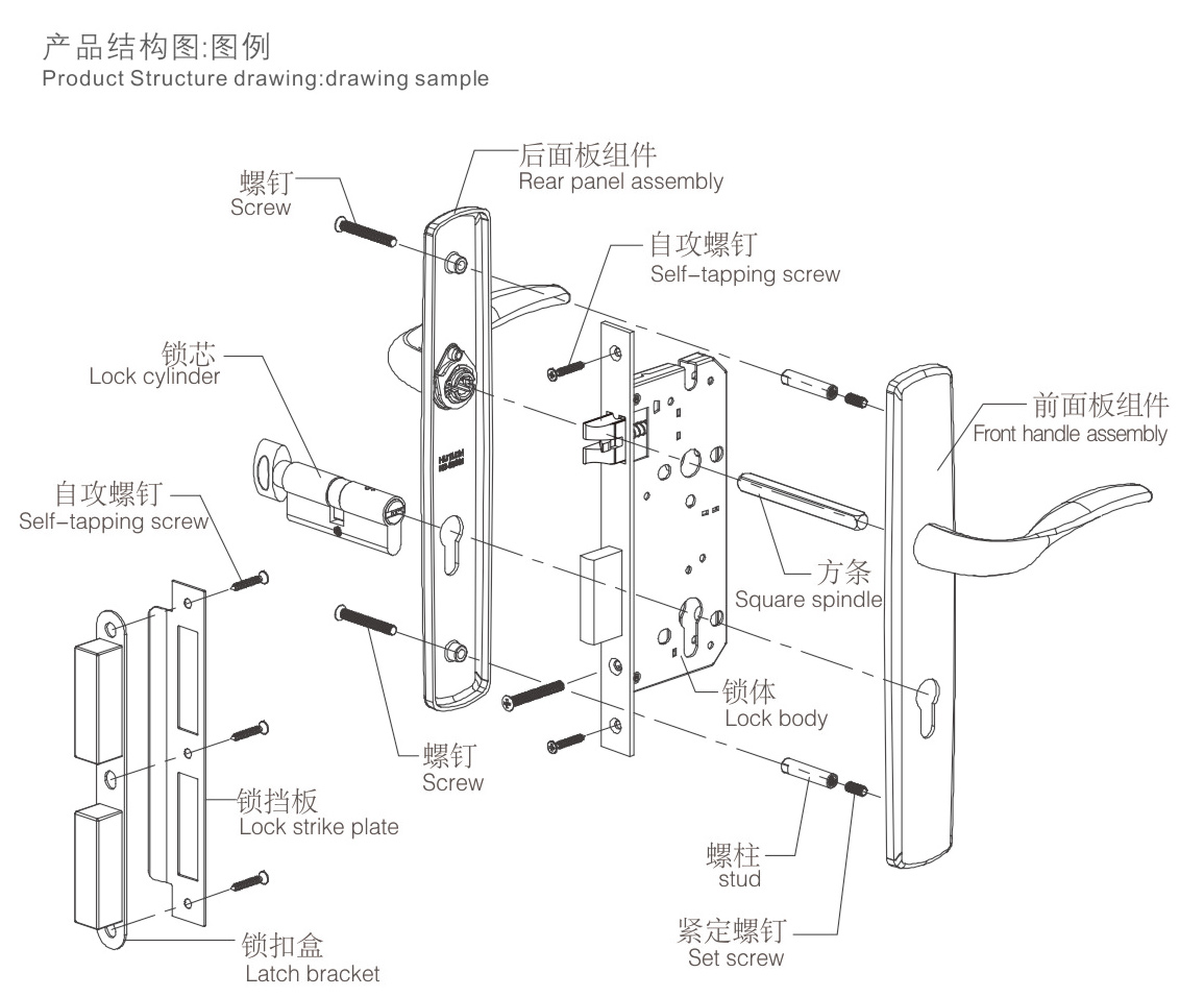 4安裝內(nèi)外面板,使把手轉(zhuǎn)動(dòng)順:擰緊螺釘(如上圖:E-F)。